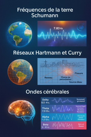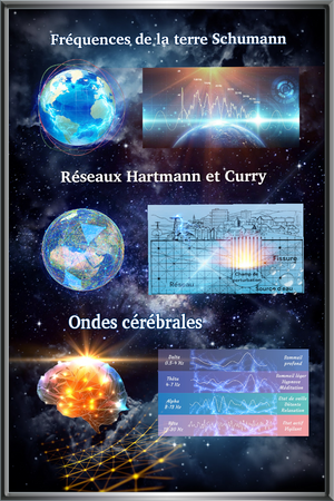 Mais, ce n’est pas tout puisque notre cerveau fonctionne lui aussi à bases de différentes fréquences d’ondes qui vont interagir avec les fréquences de la terre et les grillages Hartmann et Curry.