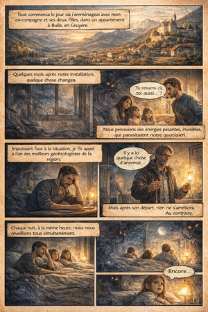 Bientôt une année que je ne me sentais pas bien chez moi. J’envisageai d’éventuellement déménager dès que possible. Mon compagnon n’aimait pas rester chez moi et trouvait toujours un moyen de nous en faire sortir. Chaque nuit trois à quatre réveils et tous les matins étaient de difficiles et pénibles réveils fatigués.